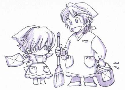 お掃除ブルー&博士・・・8話のひらひら白エプロン姿をもう一度蘇らせたくて描きました。