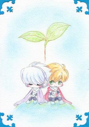 2人の足元は地球の大地(水の大地?)のつもりで描いたので